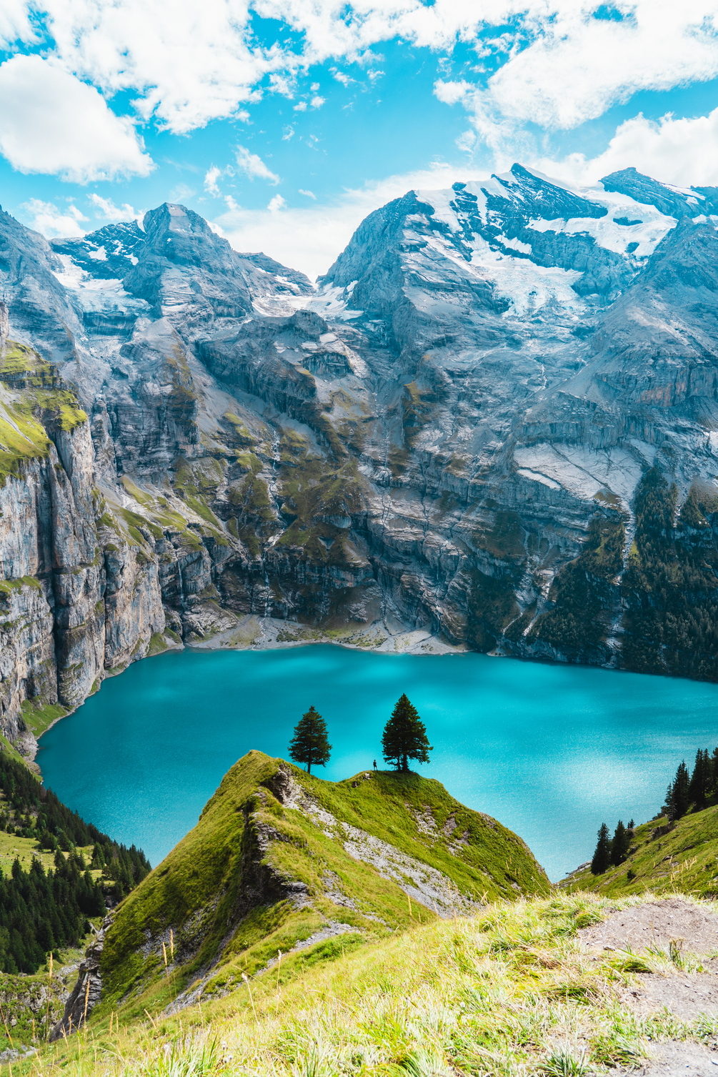 Nestled high in the Swiss Alps, Oeschinensee is a pristine mountain lake that embodies the purest essence of Switzerland's natural beauty. Surrounded by rugged peaks, lush forests, and pristine meadows, this alpine wonderland invites visitors to step into a world where crystal-clear waters mirror the majesty of the mountains above. Join us on a journey through this serene sanctuary, where every glance is a breathtaking postcard of Switzerland's unparalleled scenic splendor.