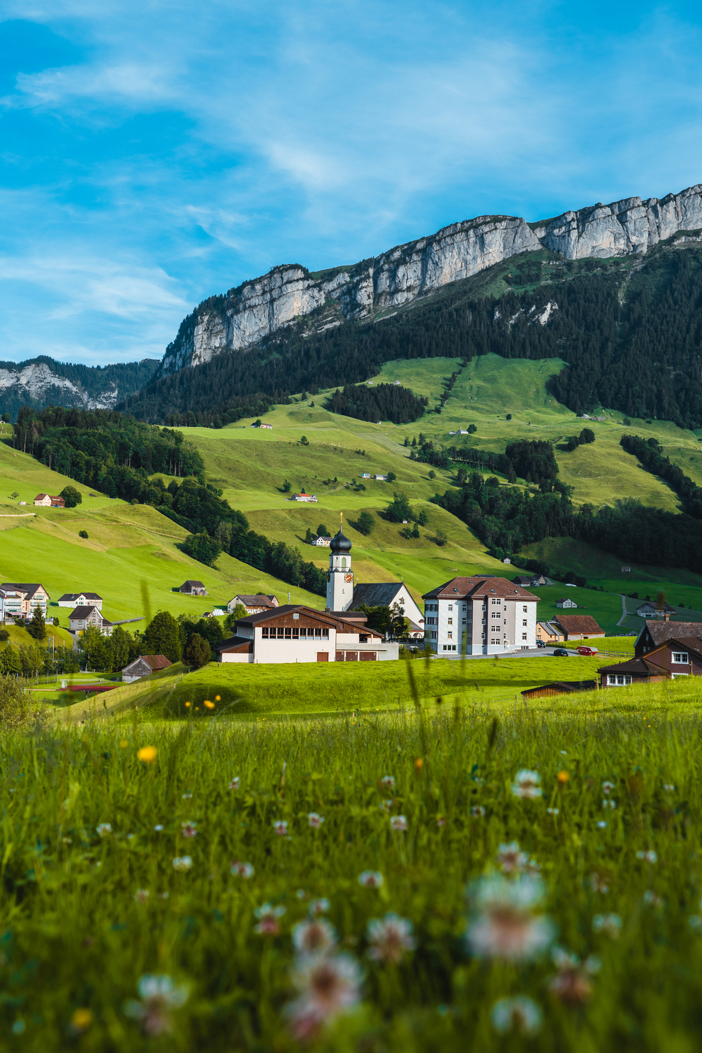 Die Swiss landscape is adorned with lush green meadows that exude a sense of tranquility and natural beauty. Rolling across hills and valleys, these vibrant green expanses seem to have been painted by nature itself. These meadows, adorned with wildflowers, offer a serene escape where one can unwind amidst the simple charm of the countryside. Whether basking in the summer sun or blanketed by snow in winter, Switzerland's green meadows provide a timeless connection to the country's unspoiled allure.